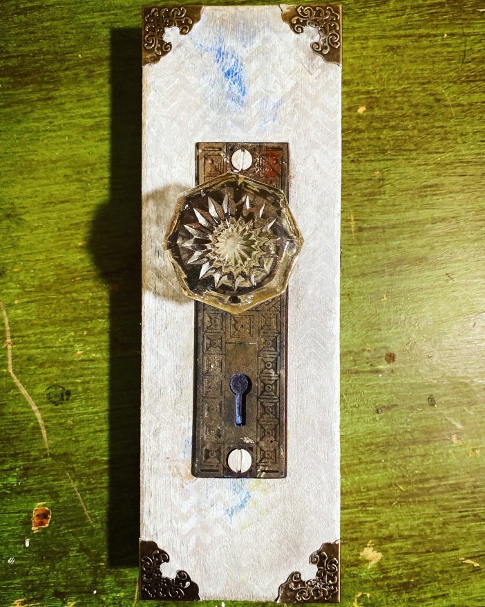 I have continued to make more of my doorknob pieces. I really love making them. After realizing that I have been focusing mostly on gold lately, I wanted to do something more silver. I do love silver and here is what I came up with: