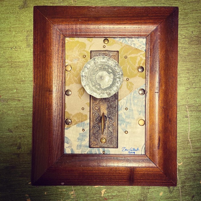 Here are a couple new doorknob pieces I have done in frames—which is different for me. I am still having so much fun here: